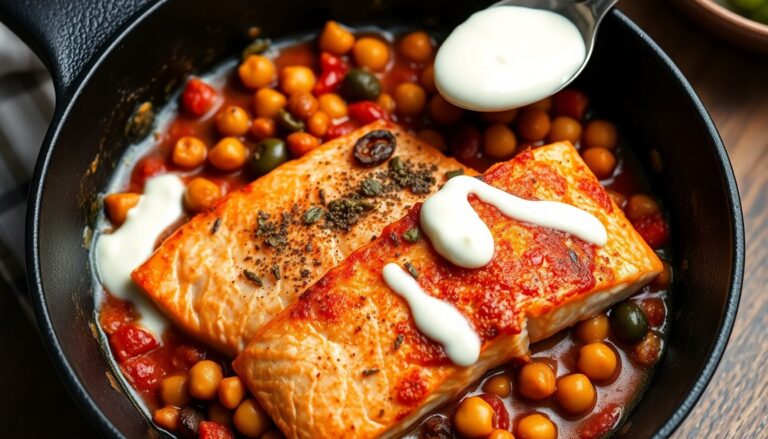 Prepare the tomato-chickpea base in bulk, keep lemons and yoghurt on hand, and designate one pan as your weekday workhorse. Sear fish to order and combine components for a fresh finish—minimal hands-on time, maximum contrast of hot sauce and cool yoghurt. Small changes in shopping and mise en place yield big improvements in speed and consistency.